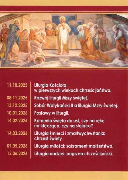 Jako chrześcijanie bierzemy udział w liturgii Kościoła, która w ciągu wieków zmieniała się, ubogacała, ale też stawała się coraz bardziej prosta, by jej uczestnicy mogli świadomie ją przeżywać. Im większy stopień zrozumienia znaków, postaw, tekstów, które tworzą liturgię, tym głębsza wiara i ciągłe pragnienie zbliżania się do Chrystusa i naśladowania Go. Proponowane wykłady otwarte skupiają się na okresie wczesnochrześcijańskim, w którym liturgia Kościoła rodziła się i rozwijała, i na czasach współczesnych, kiedy nie zawsze potrafimy właściwie odczytać jej piękno i znaczenie w naszym życiu.